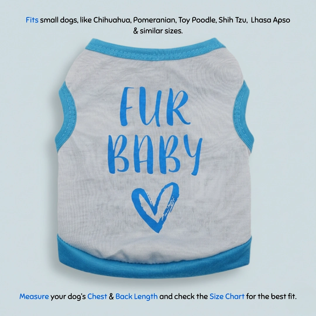 Fits small-sized dogs onlyThis ‘Fur Baby’ vest is soft, comfy, and full of paw-sonality – just like your pup!